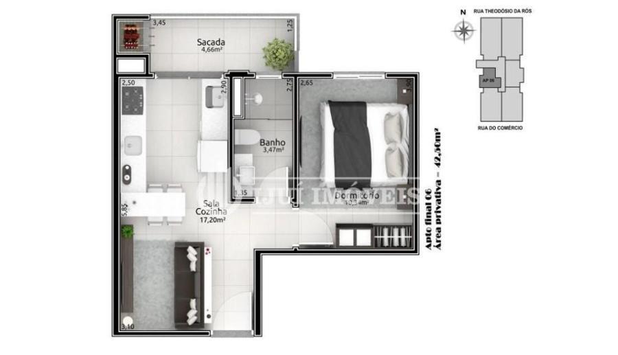 Apartamento com ótima área privativa, são 42,50m².