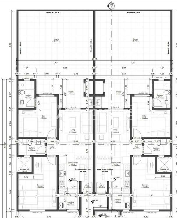 Trata - se de 2 apartamentos de Fundos contendo: 2 dormitórios sendo 1 suíte, ampla sacada com churrasqueira em mármore e pastilha, detalhes em amadeirado na sacada, 93,76m² de área privativa no apto, + 49,20 m² de 1 terraço aberto, 2 vagas de garagem, piso porcelanato, teto rebaixado em gesso.