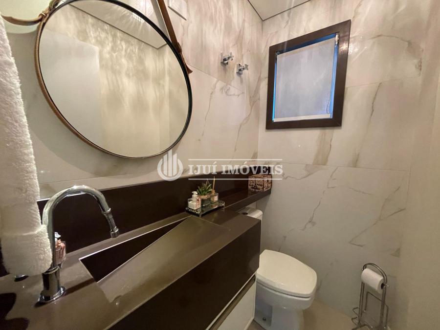 Banheiros e lavabo com móveis planejados.