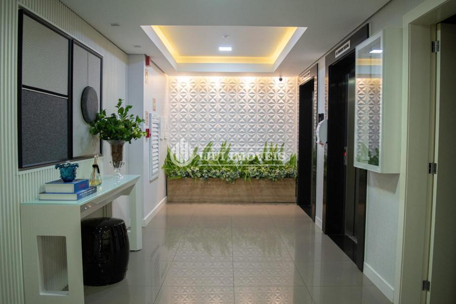 O imóvel conta com uma ampla suíte, uma demi-suíte, sala com dois ambientes, lavabo, sacada integrada com churrasqueira e uma linda vista para o sol da manhã (leste), cozinha com móveis planejados sob medida, lavanderia mobiliada e com banheiro.