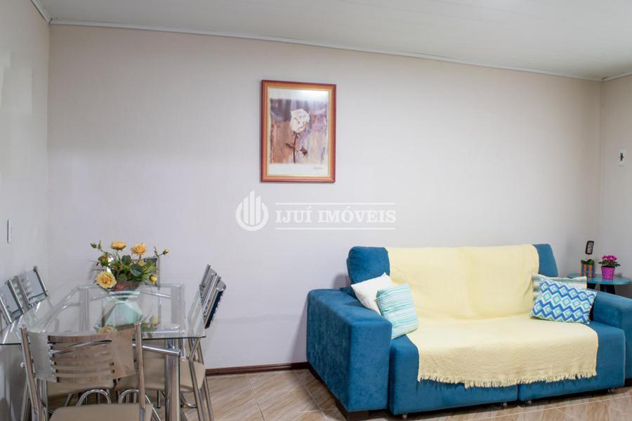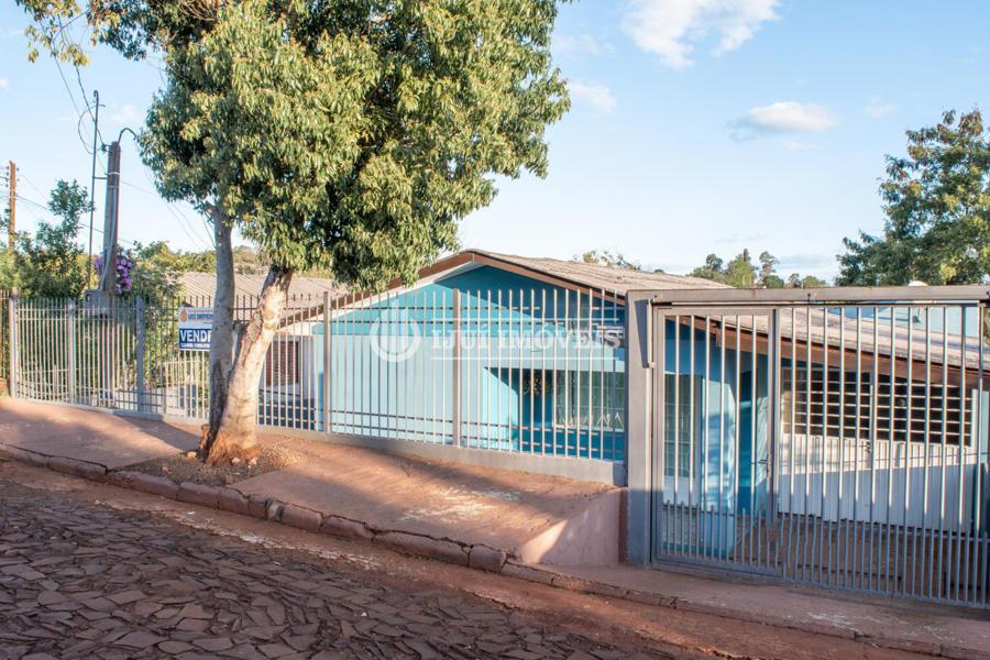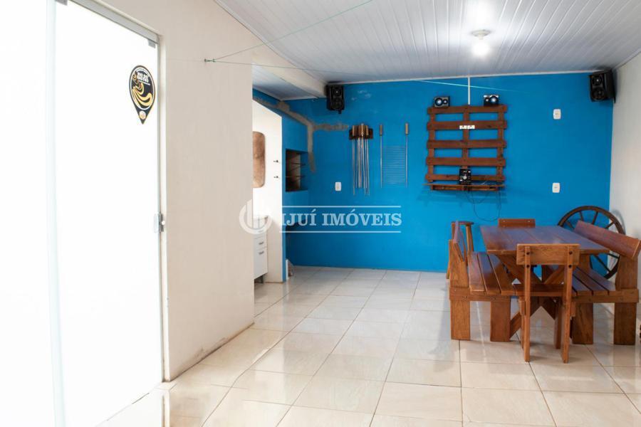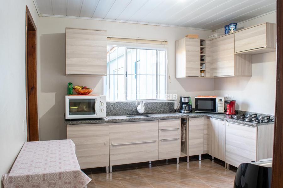 Casa possui dois dormitórios, sala de estar, cozinha, banheiro social e área de serviço. Possui uma garagem para dois carros, mais um espaço gourmet com churrasqueira e mais um banheiro.