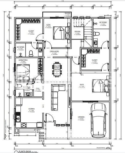 Área Total do Terreno 429,00m² : 13,00m de largura X 33,00m de comprimento.