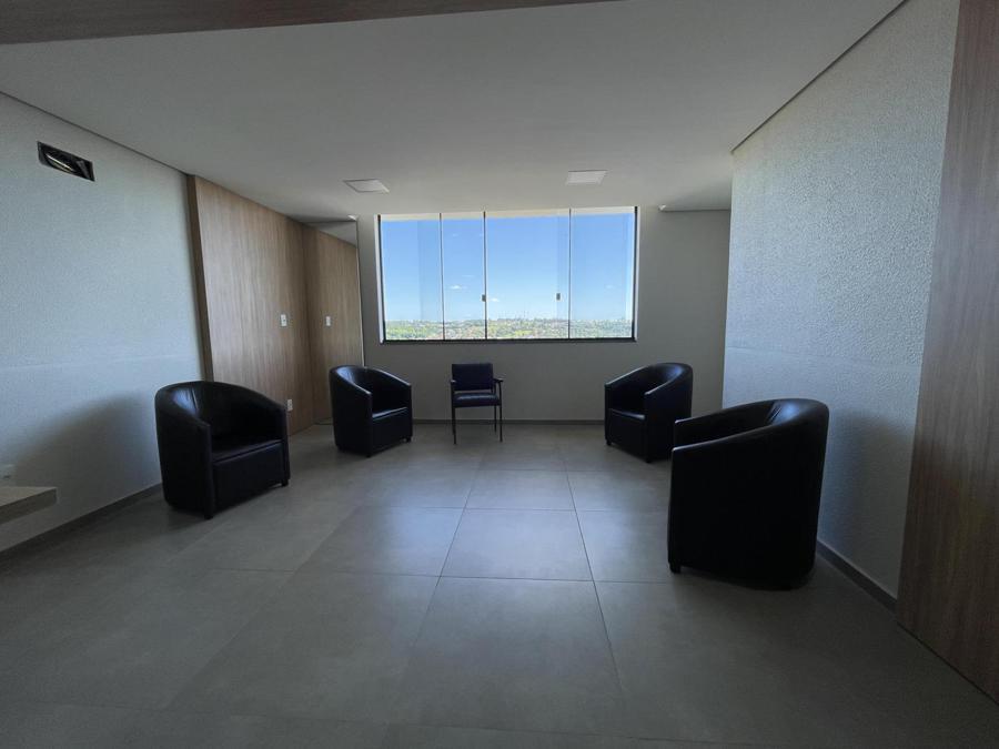 Sala em andar alto, com 42m² mais banheiro social e box de garagem.