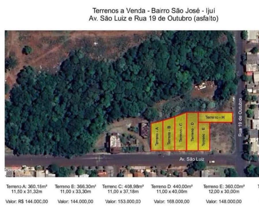 Terrenos com ótima posiçao solar e boa localização entre a Av. São Luiz e a rua 19 de Outubro, nas proximidades da pizzaria Sabor da Serra, com valor acessível; Podendo ser financiado terreno com construção pelo programa minha casa minha vida ou financiar somente o terreno pelo mesmo programa!